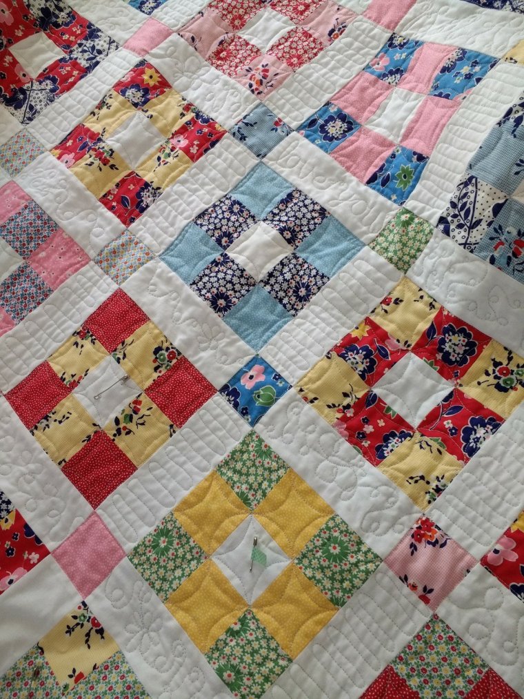 I’ve been working on the CC quilt again. Part of putting it aside, which I mentioned earlier, was “how do I get this trimmed to the size called for in the pattern?” One of those questions that tend to halt my progress. So when I pushed to get back to work on it, I decided to fold the columns in half and measure the cut from each side from the ironed crease. MUCH easier than worrying if I am cutting too much from one side and making it wonky. Moving along on that one now. So, one top ready to baste and quilt and another almost. Then there are always the three tops that were already here and the one I had pieced several years ago and the panel I have kept in my fabric stash…… And this is why I have dreams of a long arm…. lol.